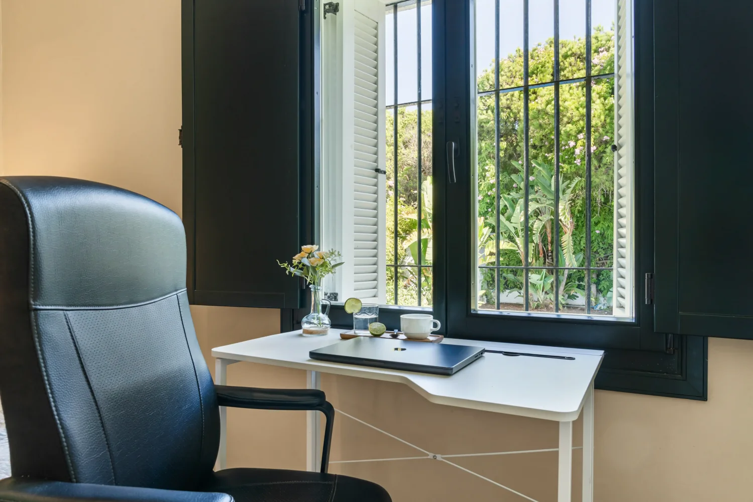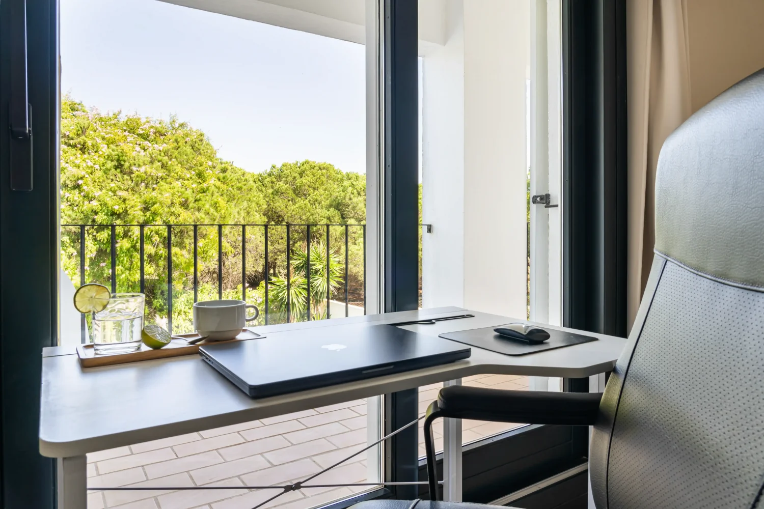 Vögelzwitschern, Blick ins Grüne, Glasfaser-Wifi, Klimatisierung/Heizung und jede Menge Platz - in der Villa Golf & Sun arbeiten Sie komfortabel in der Haupt- und Nebensaison.