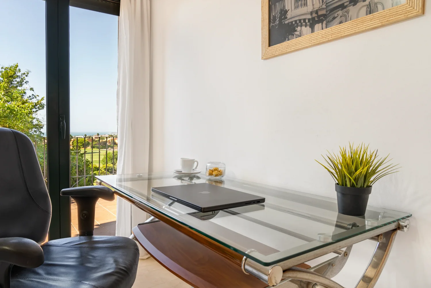 Das Ferienhaus verfügt über Glasfaser-Wifi und mehrere ruhige, klimatisierte Plätze mit herrlichem Blick, an welchen konzentriert remote gearbeitet werden kann.